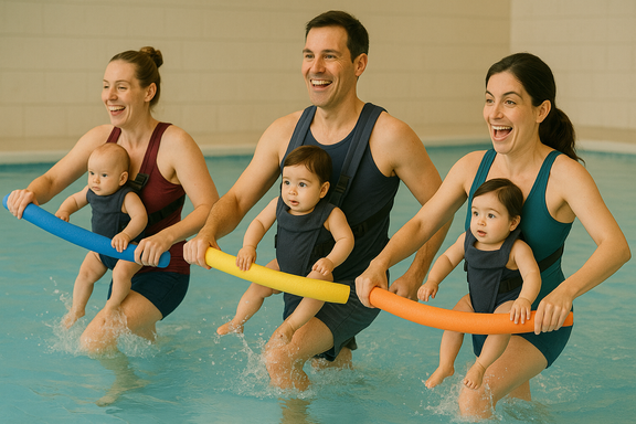 Sichere dir einen Platz in unserem beliebten Aqua Fit mit Baby Kurs und genieße wertvolle Zeit im Wasser – für Gesundheit, Wohlbefinden und pures Vergnügen mit deinem Baby.