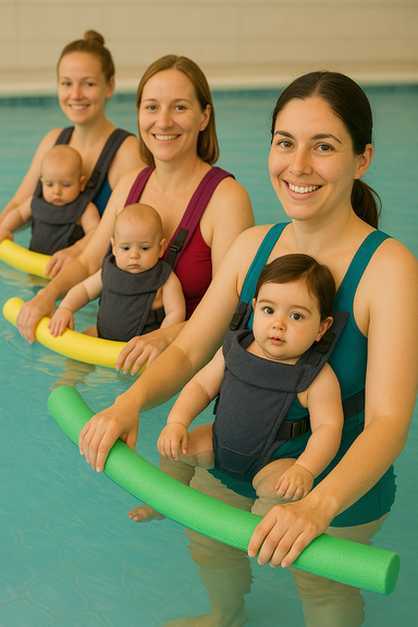 Aqua Fit mit Babytrage kombiniert sanfte Fitness, wohltuende Entspannung und spielerische Wassergewöhnung für dein Kind – alles in einer sicheren, entspannten Atmosphäre.